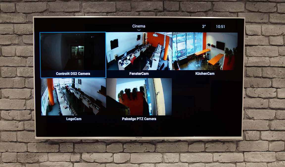 Zusammen mit der SR260 Fernbedienung erhält der entsprechende Raum nicht nur die Grafische Bedienung wie auf dem Touchscreen oder der APP, sondern den Zugriff auf die integrierten IP-Kameras. Entsprechend programmiert könnte so beispielsweise der Besuch, der vor der Tür steht, automatisch per Livebild auf den Projektor oder TV angezeigt werden.